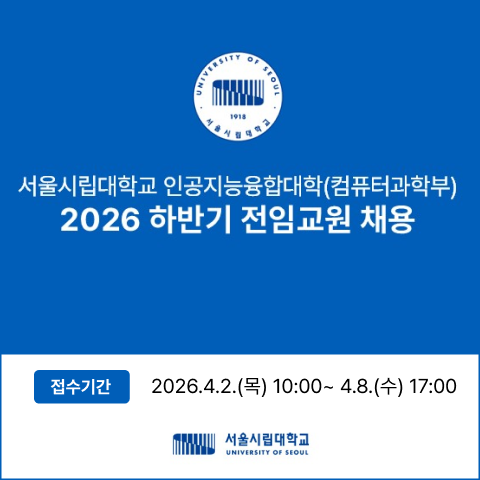 [서울시립대학교 컴퓨터과학부] 2026학년도 1학기 전임교원 초빙 공고