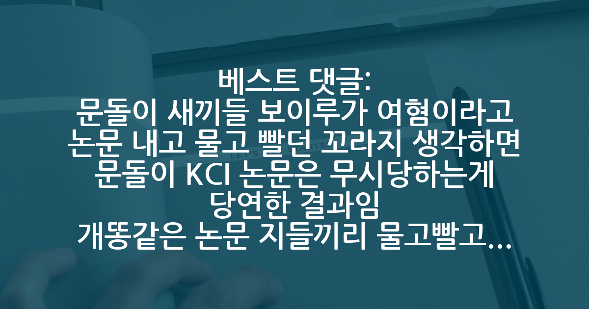 그놈의 일부 드립 ㅋㅋㅋㅋㅋㅋ 어휴.. 이공계는 mdpi 같이 합격률만 높아도 좋은 저널 아니라고 기피하는데 문돌이들은 개똥같은 거 올라가도 kci 좋단다