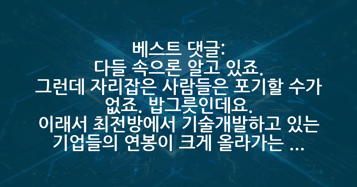 물론 실제로 묵묵히 기술을 개발하고 실험을 반복하는 진짜 연구자들도 많을 것이라고 생각합니다. 근데 문제는 지금의 시장 구조가 이런 “정직한 연구”보다 “잘 포장된 연구”를 우선적으로 선택하게 만든다는 점입니다. (어찌보면 한국 사회 특징인 것 같기도 하고) 과장과 모호함이 경쟁력이 되는 기형적인 구조 속에서, R&D라는 단어가 점점 현실에서 괴리된 상징처럼 부풀어 오르고 있는 느낌이 드네요. 기술 생태계가 이렇게 서사 중심으로 흘러가면 결국 버블은 반복되고, 시장은 또 한 번 불신을 겪게 되지 않을까 생각합니다.