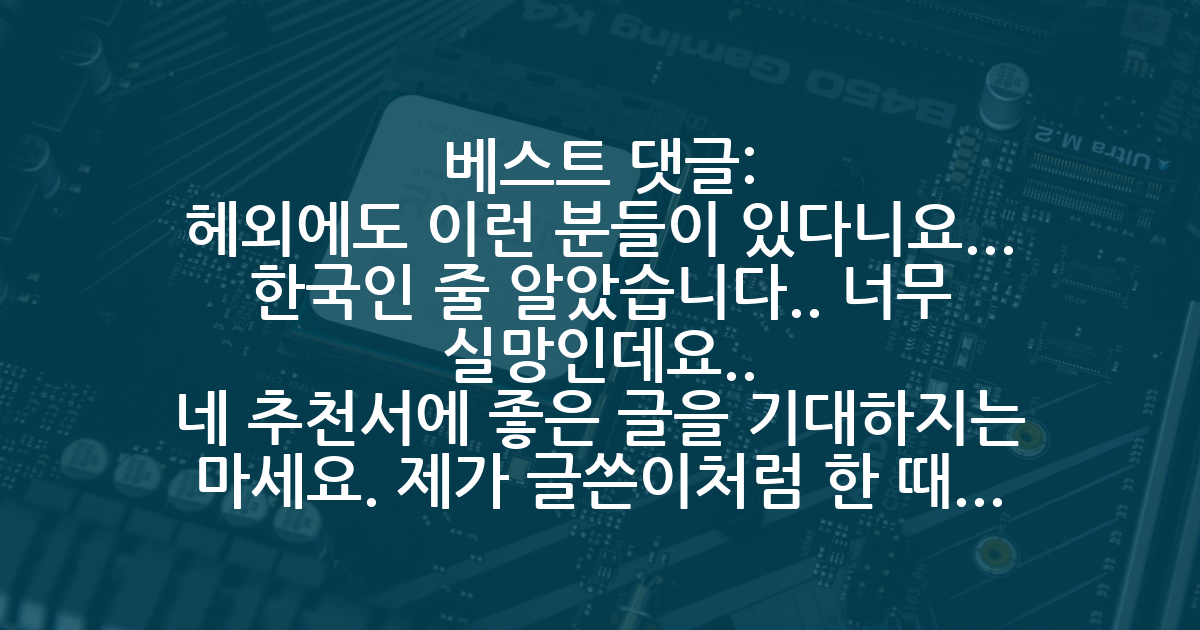 BEST헤외에도 이런 분들이 있다니요... 한국인 줄 알았습니다.. 너무 실망인데요.. 네 추천서에 좋은 글을 기대하지는 마세요. 제가 글쓴이처럼 한 때 생각 많이 했고, 지도교수님이 딱 이런 분이셨습니다. 자기중심적 생각만 하는 사회지능 낮은 사람입니다. '어떻게 저 위치에서 자기 평판 흐릴 짓을하지?' 라고 글쓴 분께서 생각하실텐데 실제로 그렇게 하실겁니다. 다만 자기 얼굴에 먹칠은 안 하게, 적절한 식으로요. 이런 분들이 남들 엿 먹일 일은 잘하고, 자기는 교묘하게 빠져나갈 수 있도록 만들어놓거든요. 적당히 맞추고 타이밍 맞으면 얼른 나오세요. 위로 드리자면 시기가 늦어질 뿐 될 사람은 결국 됩니다. 다만 아직 약자이니 감내해야할 부분이지요. 모두 겪는 일입니다. 그리고 마음 잘 다스리시고, 능구렁이에게 절대 빌미 주지 마시고요.