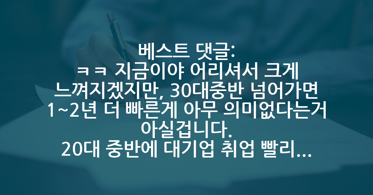 BESTㅋㅋ 지금이야 어리셔서 크게 느껴지겠지만, 30대중반 넘어가면 1~2년 더 빠른게 아무 의미없다는거 아실겁니다.