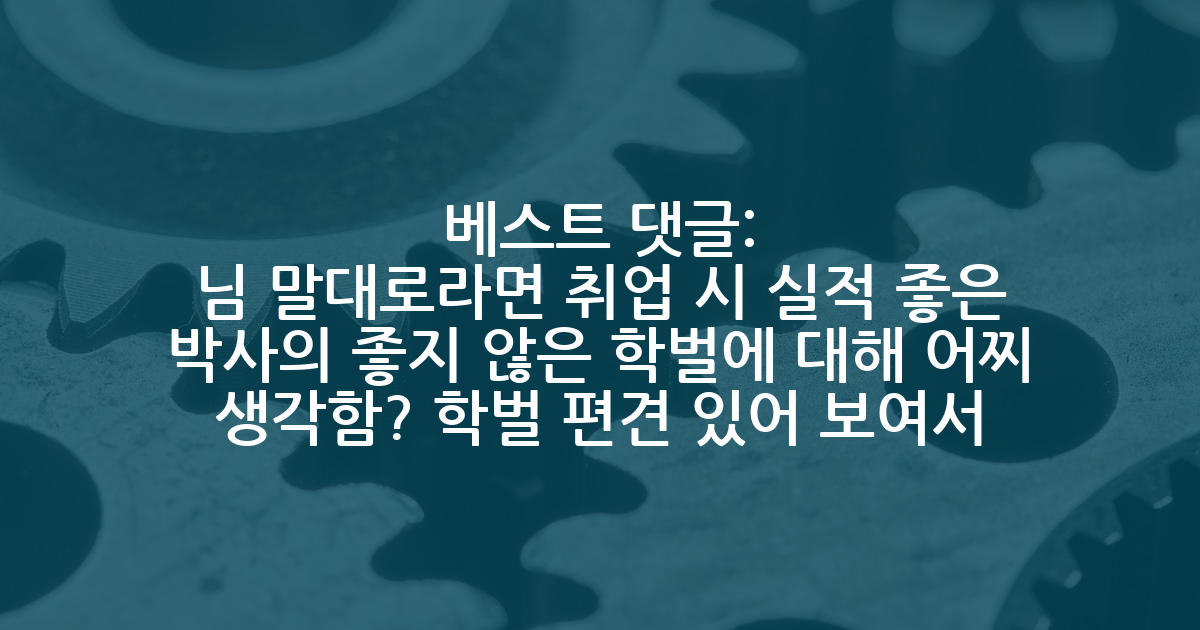 BEST님 말대로라면 취업 시 실적 좋은 박사의 좋지 않은 학벌에 대해 어찌 생각함? 학벌 편견 있어 보여서