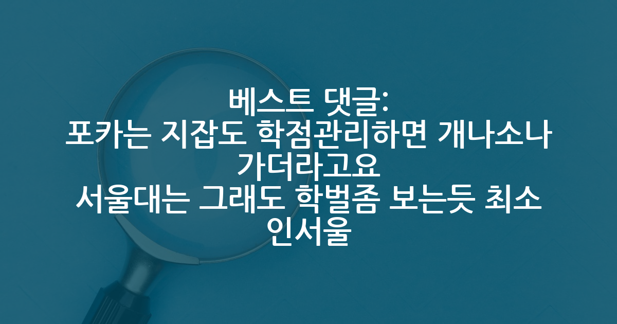 BEST포카는 지잡도 학점관리하면 개나소나 가더라고요 서울대는 그래도 학벌좀 보는듯 최소 인서울