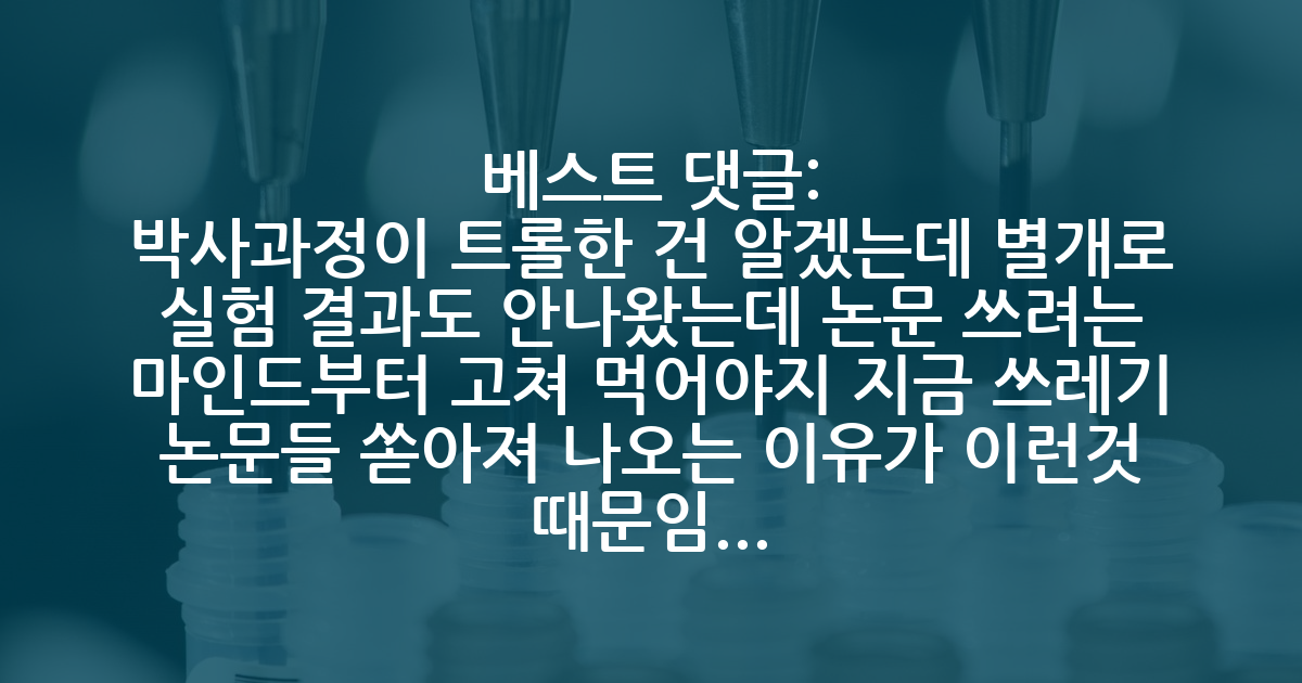 BEST박사과정이 트롤한 건 알겠는데 별개로 실험 결과도 안나왔는데 논문 쓰려는 마인드부터 고쳐 먹어야지 지금 쓰레기 논문들 쏟아져 나오는 이유가 이런것 때문임