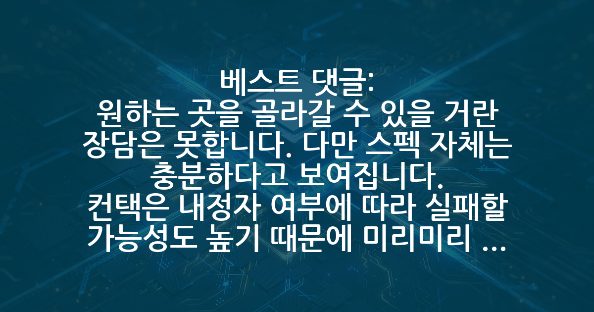 BEST원하는 곳을 골라갈 수 있을 거란 장담은 못합니다. 다만 스펙 자체는 충분하다고 보여집니다. 컨택은 내정자 여부에 따라 실패할 가능성도 높기 때문에 미리미리 해 두는 게 좋습니다. 4-1학기부터 한군데씩 찔러보세요. 어떤 곳은 나중에 다시 연락달라고 하는 곳도 있고 어떤 곳은 거절하는 곳도 있고, 어떤 곳은 여름방학 인턴 제안하는 곳도 있을겁니다. 다만 동 학교에 동시에 컨택을 하게 되면 귀찮은 일이 발생할 수 있어 순차적으로(A 연구실 거절 혹은 애매한 답변 시 B 연구실 컨택.. 이후반복) 컨택 시도 하는 것을 추천하기 때문에 가능한 미리 작업을 해 두시면 좋습니다.