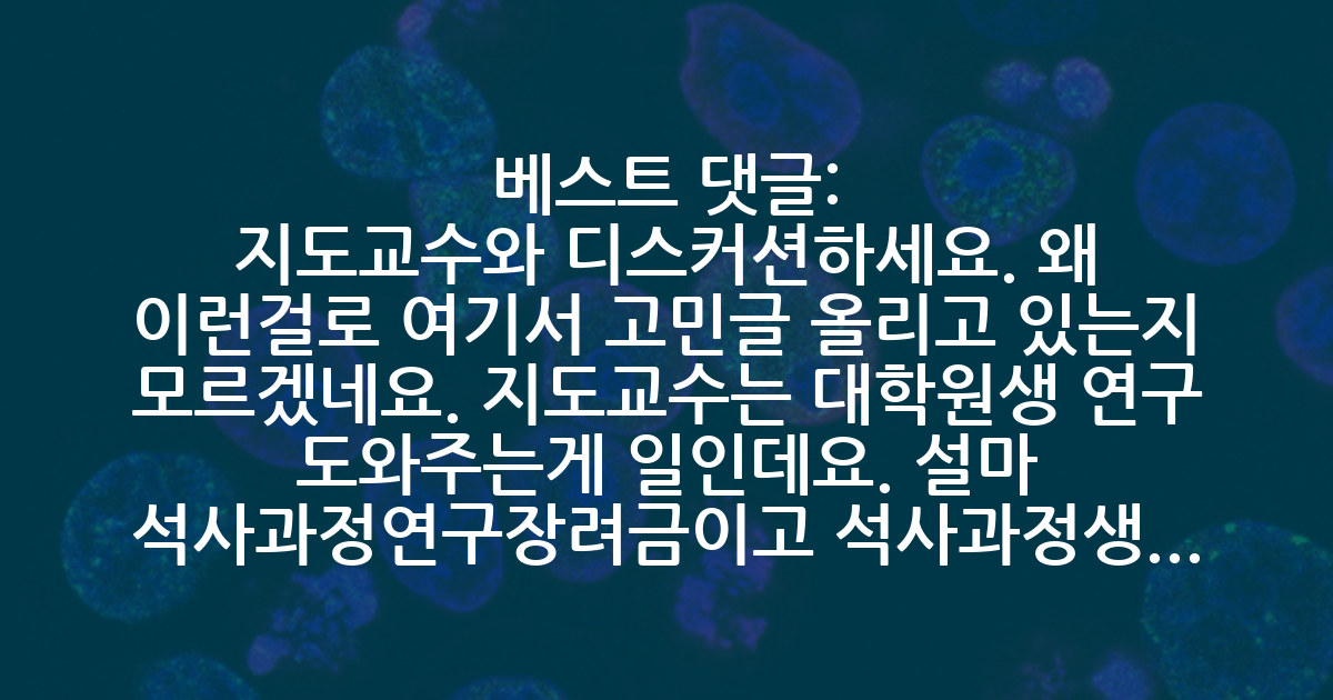 BEST지도교수와 디스커션하세요. 왜 이런걸로 여기서 고민글 올리고 있는지 모르겠네요. 지도교수는 대학원생 연구 도와주는게 일인데요. 설마 석사과정연구장려금이고 석사과정생이 연구책임자니까 내 알 바 아니다~하고 있나요?