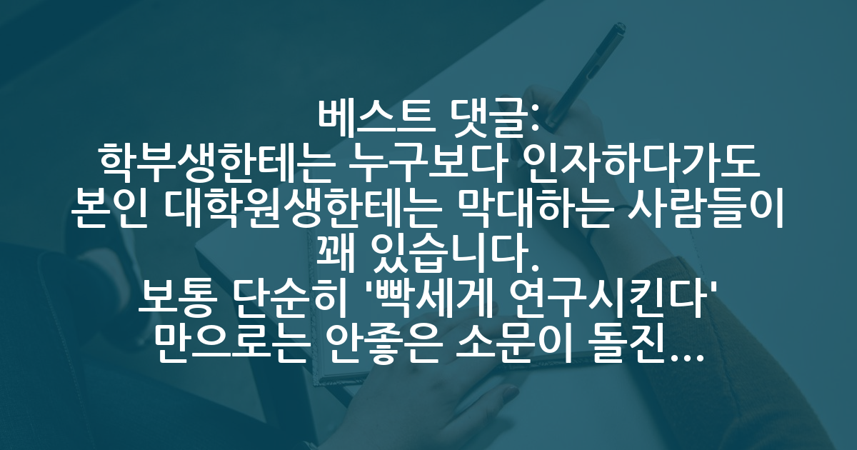 단순 너무 빡세게 공부시키셔서 소문이 안 좋은 건지, 성격에도 (제가 파악한 것 이상의) 문제가 있으신 건지... 어떻게 알 수 있을까요? 박사과정생 분들과 이야기할 기회도 좀 있었는데 아직까진 인품에 대해서 질문하지는 못했어요. 제 상황에 대한 의견 댓글로 알려 주시면 감사하겠습니다.