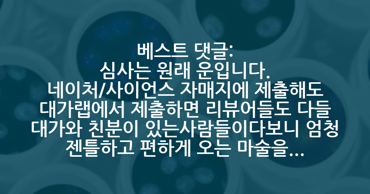 10 - 심사는 원래 운입니다. 네이처/사이언스 자매지에 제출해도 대가랩에서 제출하면 리뷰어들도 다들 대가와 친분이 있는사람들이다보니 엄청 젠틀하고 편하게 오는 마술을 볼수있습니다. 그래서 보통 본인들이 박사과정때 지도교수 이름빨로 쉽게 내다가, 본인이 내다보니 엄청나게 공격적인 리뷰들을 보면서 배워나가기도 합니다.