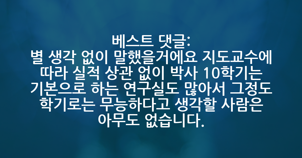 13 - 별 생각 없이 말했을거에요 지도교수에 따라 실적 상관 없이 박사 10학기는 기본으로 하는 연구실도 많아서 그정도 학기로는 무능하다고 생각할 사람은 아무도 없습니다.