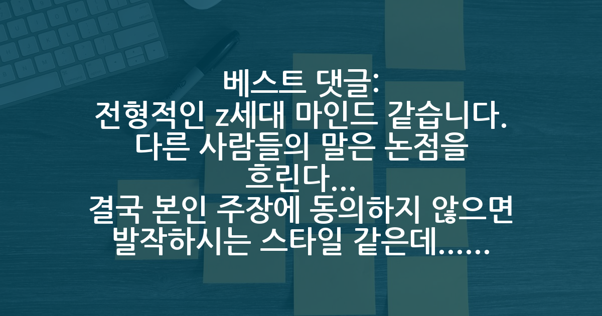 전형적인 z세대 마인드 같습니다. 다른 사람들의 말은 논점을 흐린다... 결국 본인 주장에 동의하지 않으면 발작하시는 스타일 같은데...