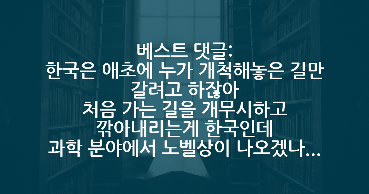 과학 분야에서 노벨상이 나오겠나? 나온다면 그건 한국이 해낸게 아니라 그 개인이 해낸거지