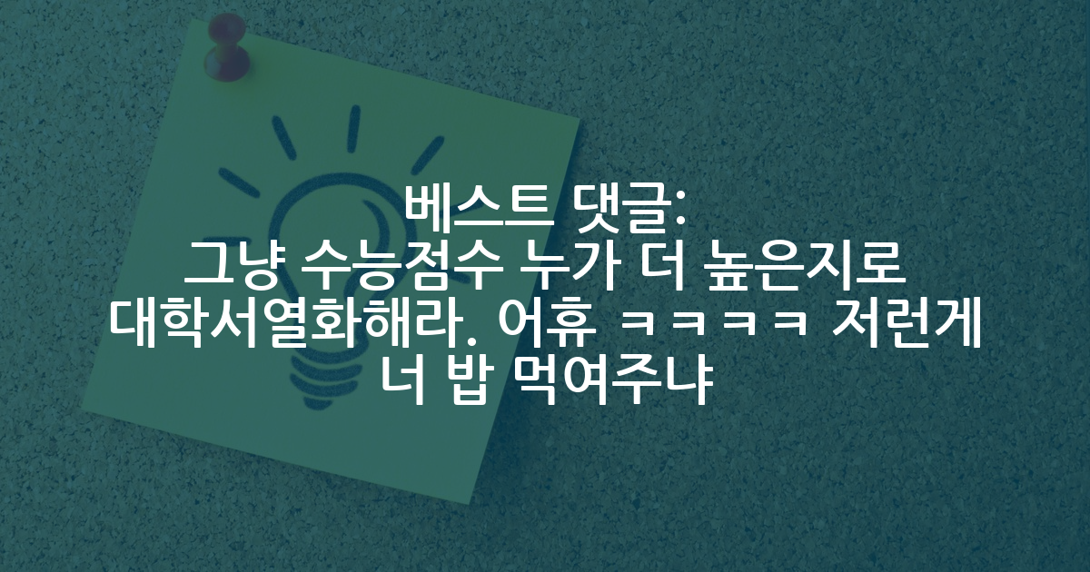 BEST그냥 수능점수 누가 더 높은지로 대학서열화해라. 어휴 ㅋㅋㅋㅋ 저런게 너 밥 먹여주냐