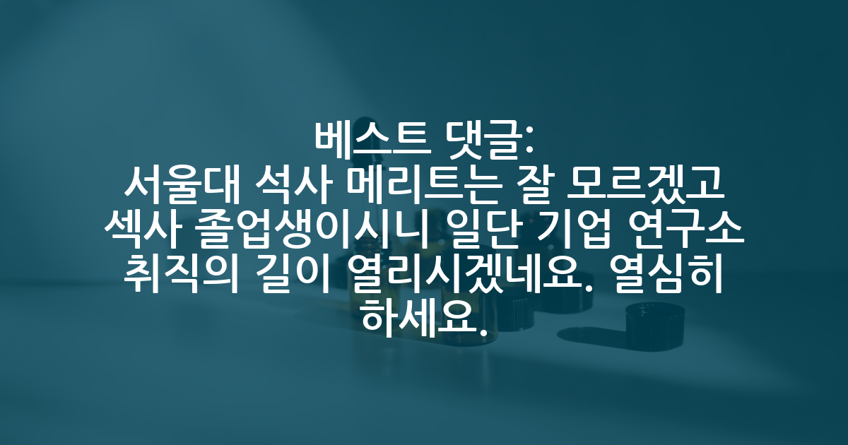 BEST서울대 석사 메리트는 잘 모르겠고 섹사 졸업생이시니 일단 기업 연구소 취직의 길이 열리시겠네요. 열심히 하세요.