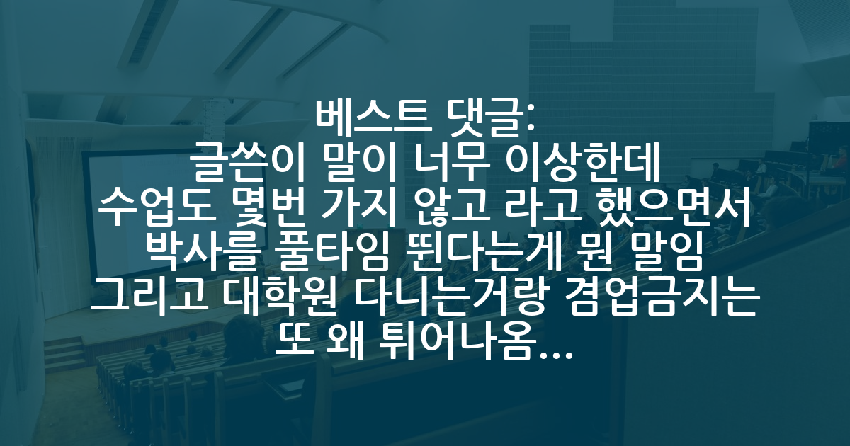 BEST글쓴이 말이 너무 이상한데 수업도 몇번 가지 않고 라고 했으면서 박사를 풀타임 뛴다는게 뭔 말임 그리고 대학원 다니는거랑 겸업금지는 또 왜 튀어나옴 걍 눈꼴 시려서 껀수 잡은거 아닌지 물어보려는거 같은데 제3자가 보면 걍 파트타임 박사과정 하는 걸로 보임
