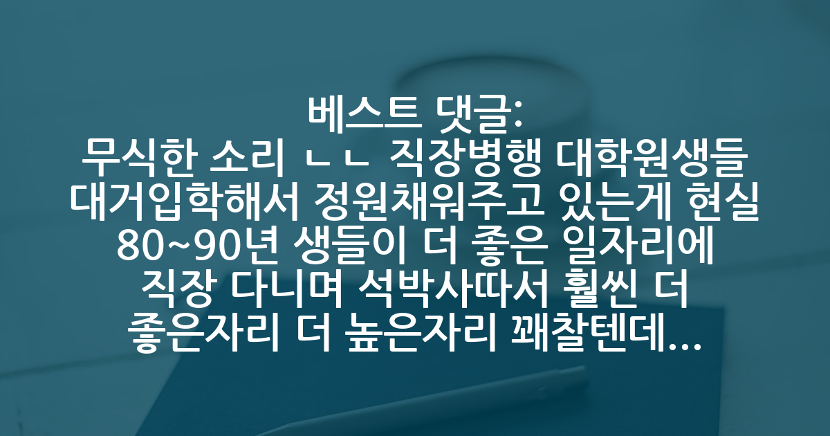 BEST무식한 소리 ㄴㄴ 직장병행 대학원생들 대거입학해서 정원채워주고 있는게 현실 80~90년 생들이 더 좋은 일자리에 직장 다니며 석박사따서 훨씬 더 좋은자리 더 높은자리 꽤찰텐데 출생아만 가지고 판단하기엔 너무 섣부른 오산임 마치 앞으로 인구 줄어드니까 부동산 안오를거다 라고 말하는거랑 다를게 없음 인구가 줄어들어도 노년 인구도 좋은 집 새 집 사고 싶어하는 니즈가 있는거처럼 생각하면 됨
